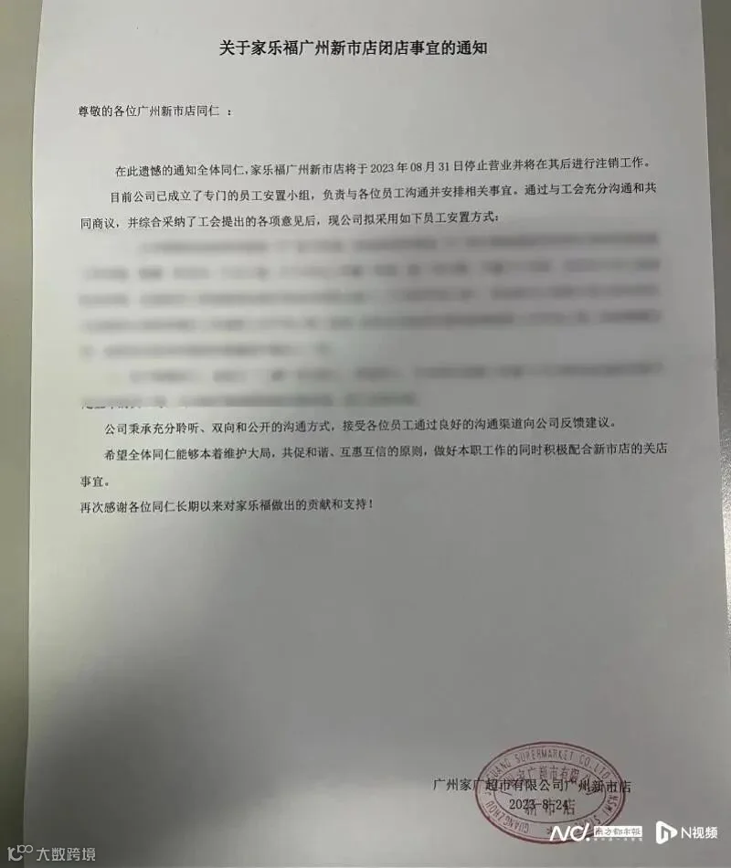 8月25日,家乐福广州新市店(也即百信广场店)突然贴出公告称,“因业务调整,我店将在8月26日停止营业。”根据多名家乐福中国员工反馈,新市店关闭得非常突然,原本它的租约要在2032年才到期。