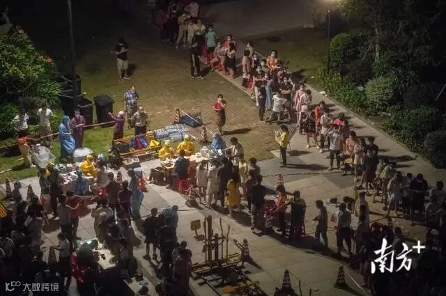 5月28日深夜,佛山市禅城区上沙村万科金色里程小区,居民有序排队进行核酸检测。南方日报记者 肖雄 摄