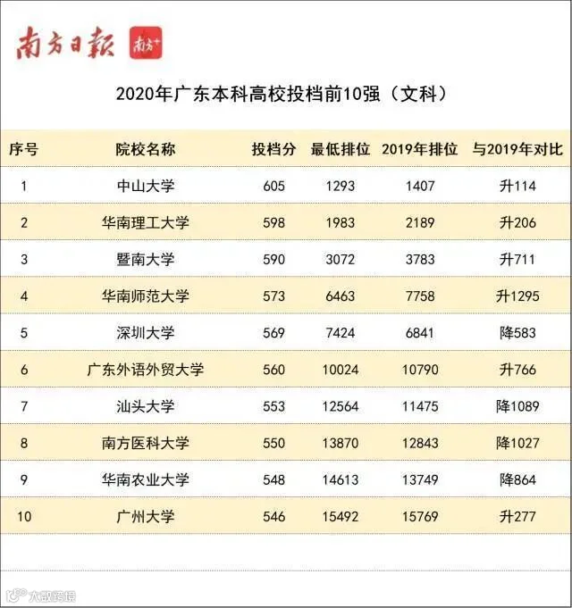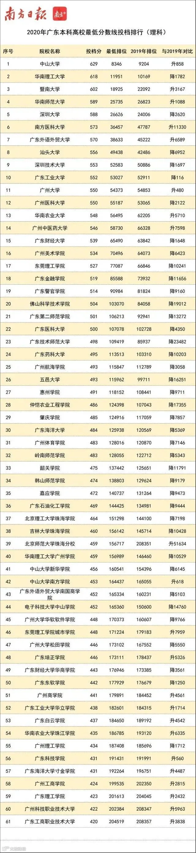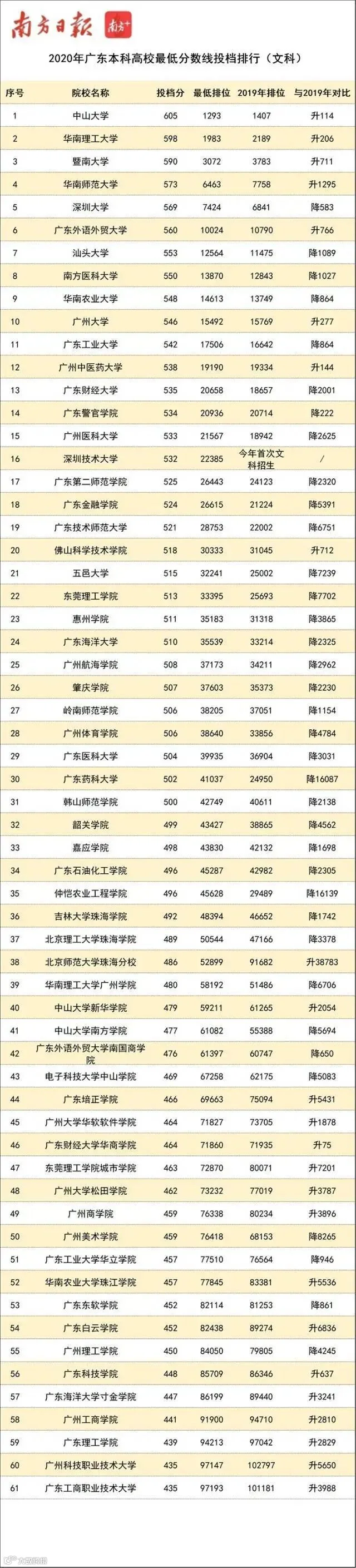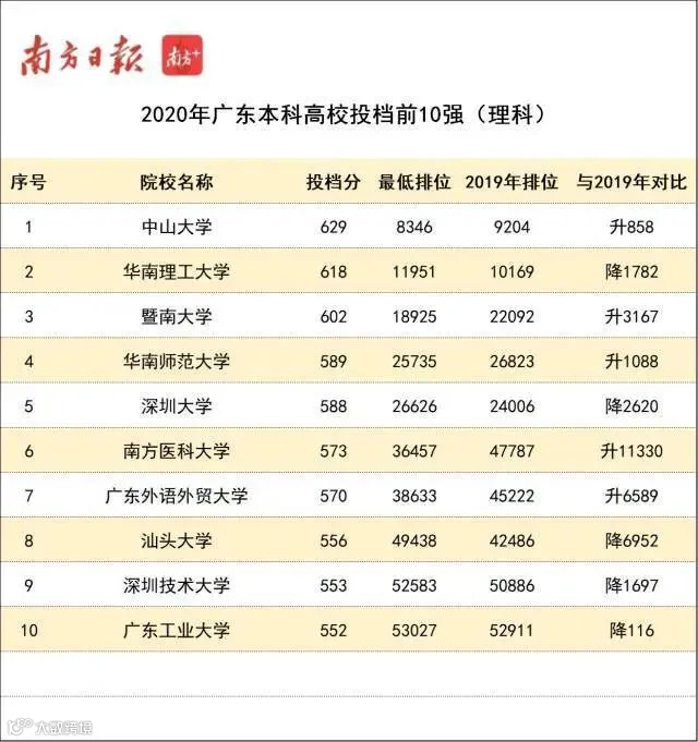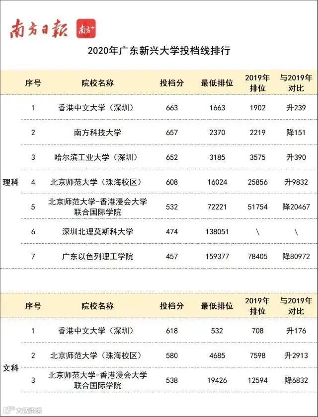 高考生必收藏!广东高校近2年投档线、最低录取排位来了
