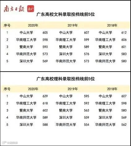 但2020年华师的投档线排名前移,文理科都位居第四名,但后起之秀深大与华师的投档线十分接近,文理科分差仅为4分和1分。其他4所高校的较量,也颇为激烈。