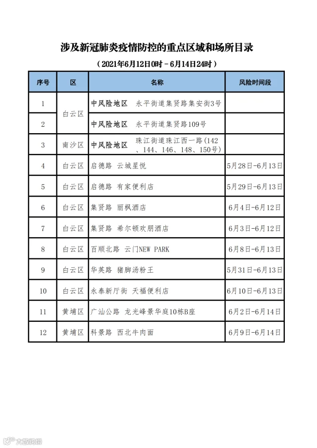 最新!广州通报12个涉疫重点区域和场所,含白云南沙黄埔