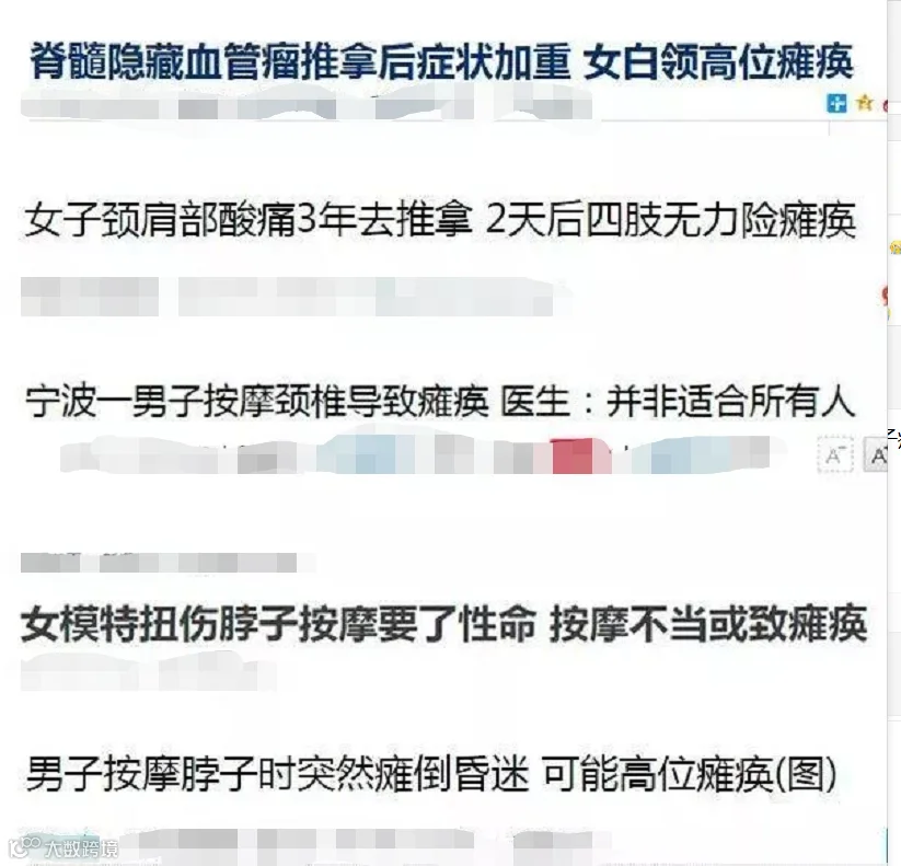 由于颈部没有骨头保护、很脆弱。当用力去按压颈部肌肉时,如果挤压到了动脉血管,则可能出现血管内膜层的撕裂,血液侵入血管管壁内导致壁内血肿,形成动脉夹层。