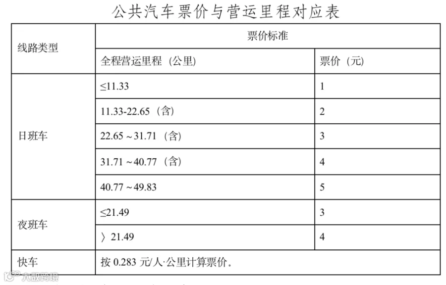 快车、夜班车基础票价