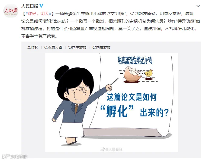 “熟蛋返生孵雏鸡”论文全网炸屏|事件全梳理