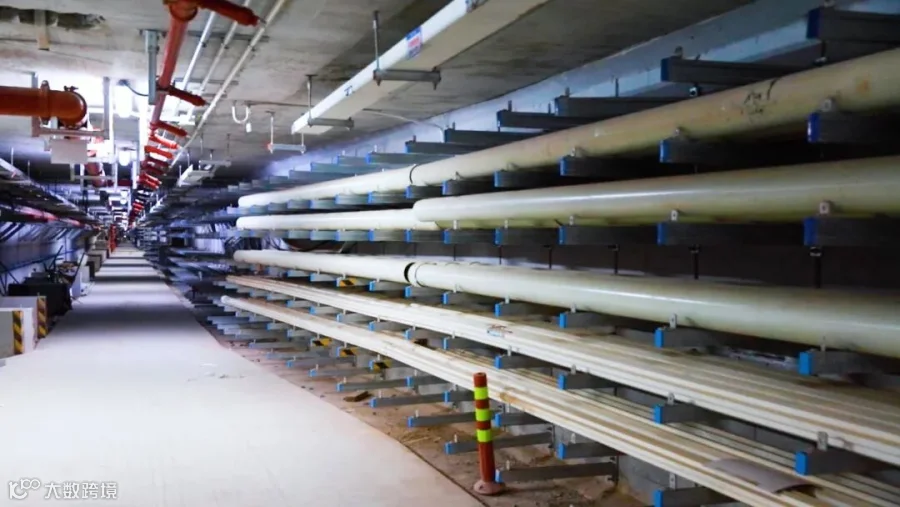 图为梅州江南新城地下综合管廊的排污管道。