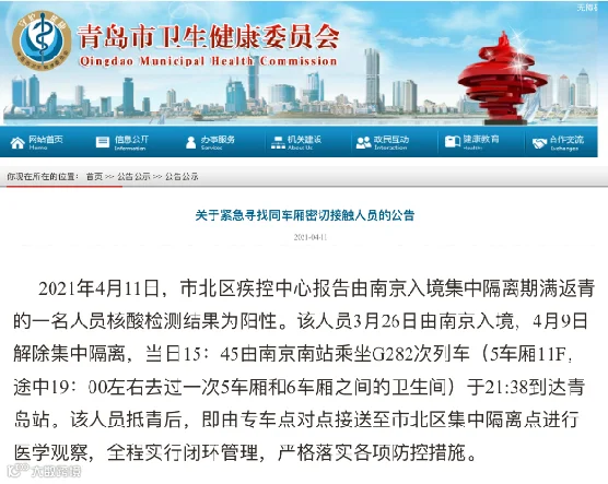 紧急寻人!青岛通报“一人核酸检测阳性”:急寻同车厢密接