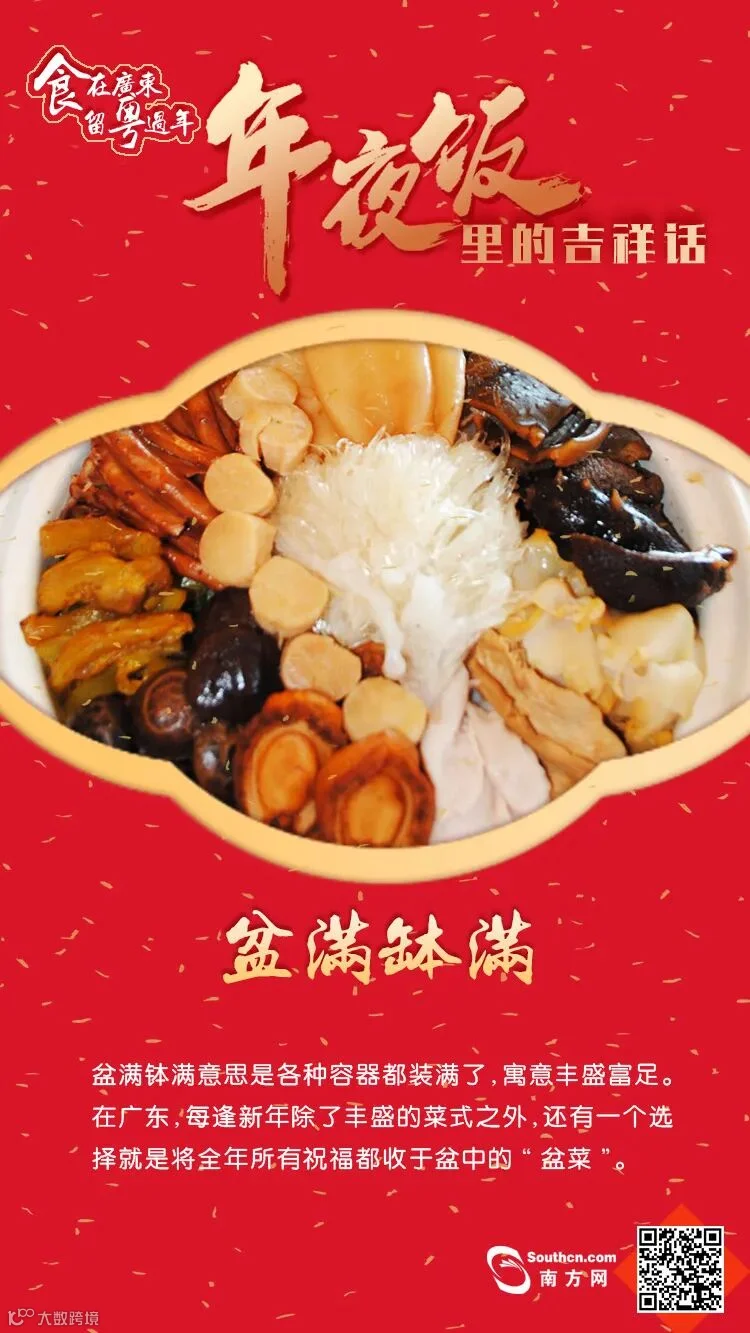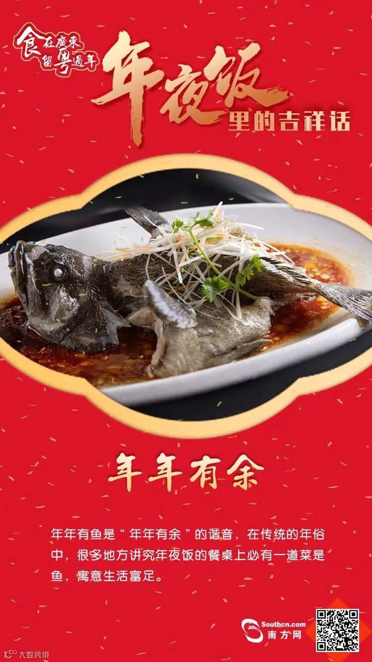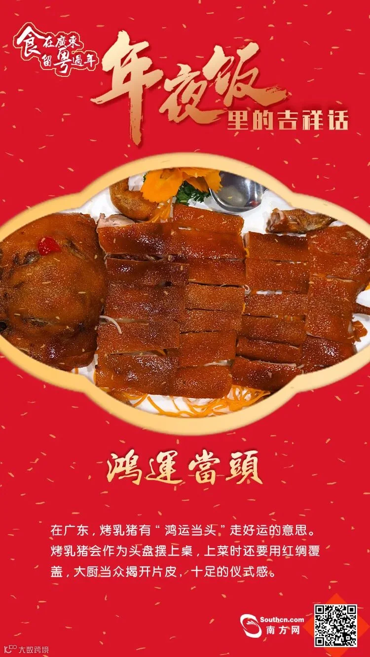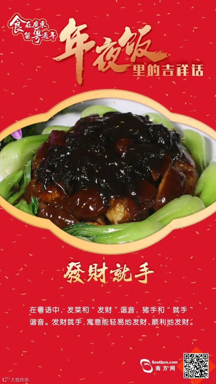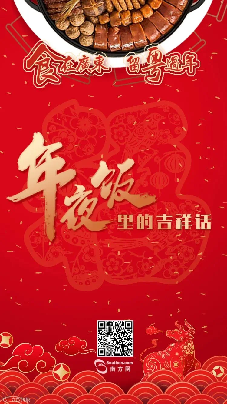“留粤过年”怎么吃得更有年味呢?对现代人来说,年夜饭的餐桌上琳琅满目、食材丰富,其象征意义早已超出“吃”的范围。相较于“吃什么”来说,年夜饭的“好彩头”搭配必不可少。今天就和南方君一起揭秘广东年夜饭里的吉祥话,吃出“好彩头”!