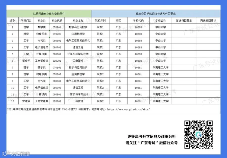 目标就读院校的选择范围可以根据自己在校的学习成绩,参考所在学校往届毕业生的报读情况,结合所在高中的办学层次综合考虑。在这里,我们以查询填写中山大学、华南理工大学这两所院校为例,填写院校的数量越多,则越具有代表性。