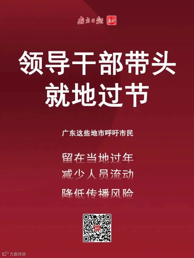 有钱没钱,在粤过年。从各地市发布的通知来看,减少出行、留在原地过年是今年春节假期的一大宗旨。如韶关、梅州、东莞、清远、云浮等地市要求领导干部带头居家过节,并积极主动劝导身边亲朋好友留在原地过节。对于广大民众,各地市纷纷呼吁非必要不出行,尽量错峰返乡,珠海、湛江、茂名、清远、揭阳等地市要求民众非必要不出境,不要前往中高风险地区。