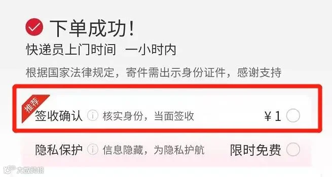 “1元签收确认”增值服务