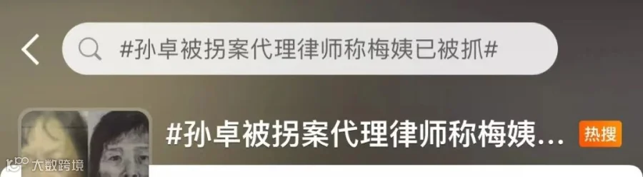 记者注意到,昨晚(25日),账号认证为北京国标(青岛)律师事务所主任的孙文学在社交媒体发帖称,“‘梅姨’抓到了,半个月内公开详细情况,一个个被拐儿童的噩梦开始的地方”,并在今早(26日)表示,“什么也不说,但是真的,一个人贩子头(目)被抓了,半个月后看结果吧”,随后发布了“梅姨”和“落网者”的对比图。
