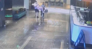 孕妇的丈夫焦急地抱着她来到大堂