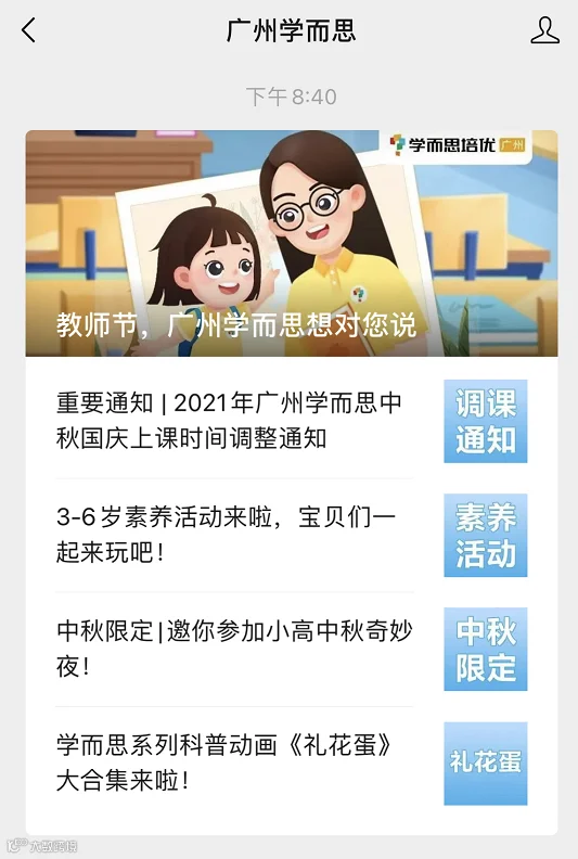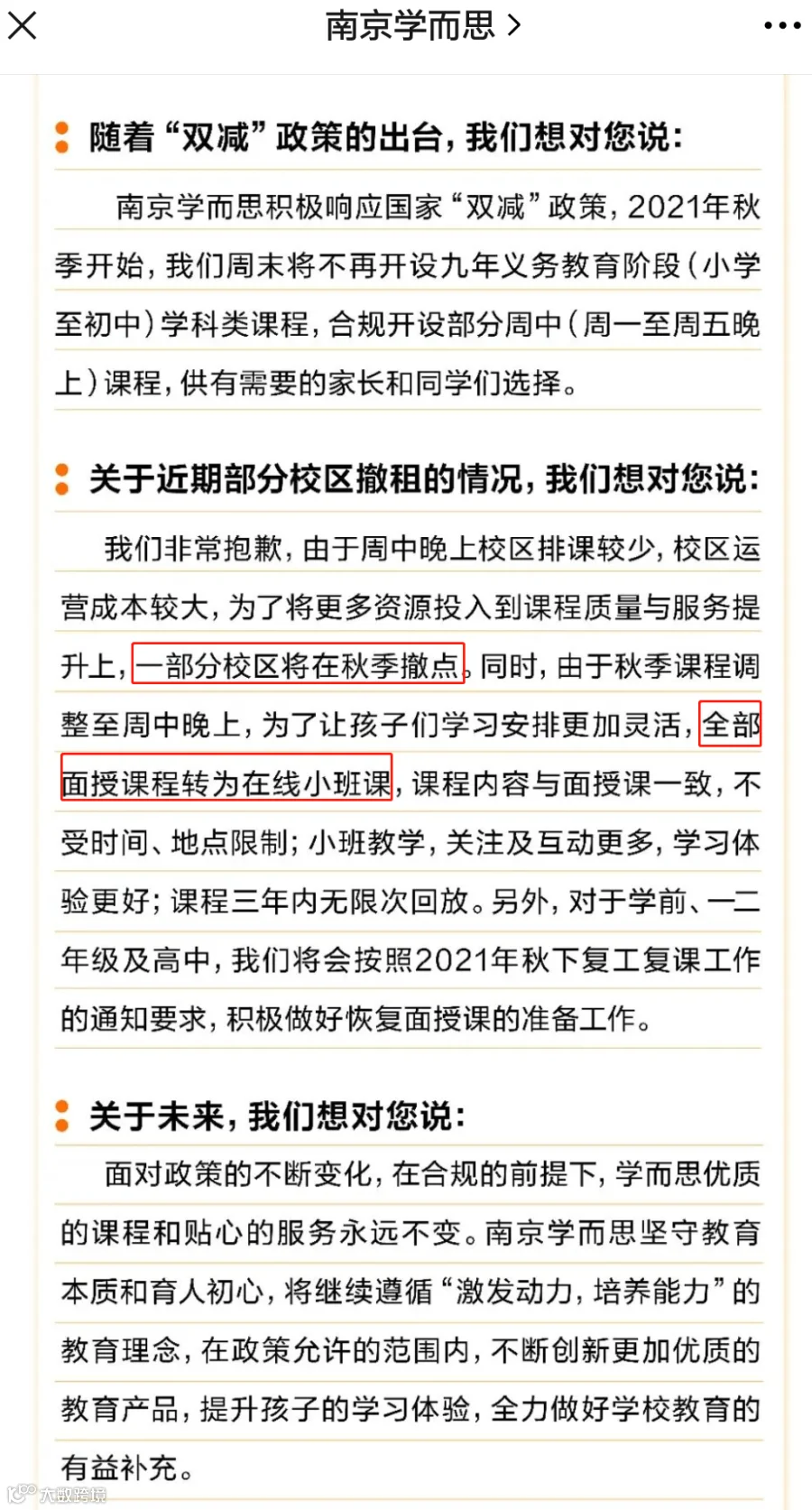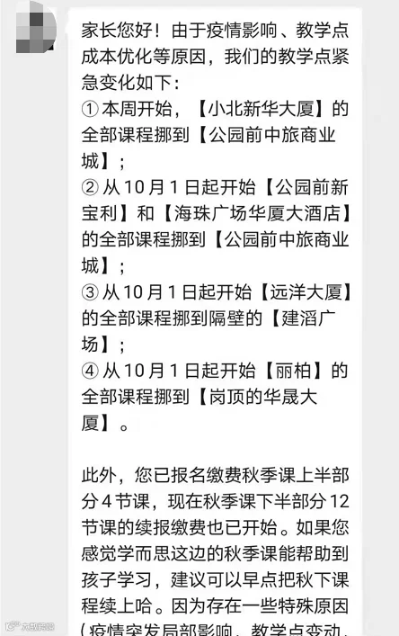 今早,广州学而思官微发布题为《教师节,广州学而思想对您说》的推文,宣布一部分校区将在秋季撤点,部分面授课程会转为在线小班。