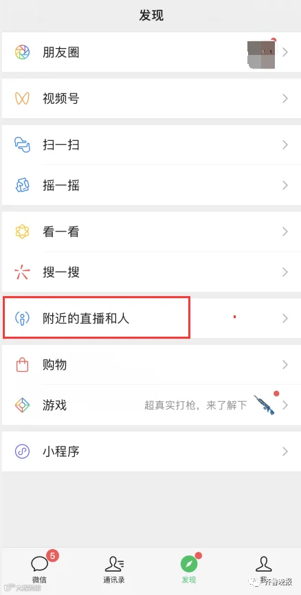 在发现页面的“附近的人”