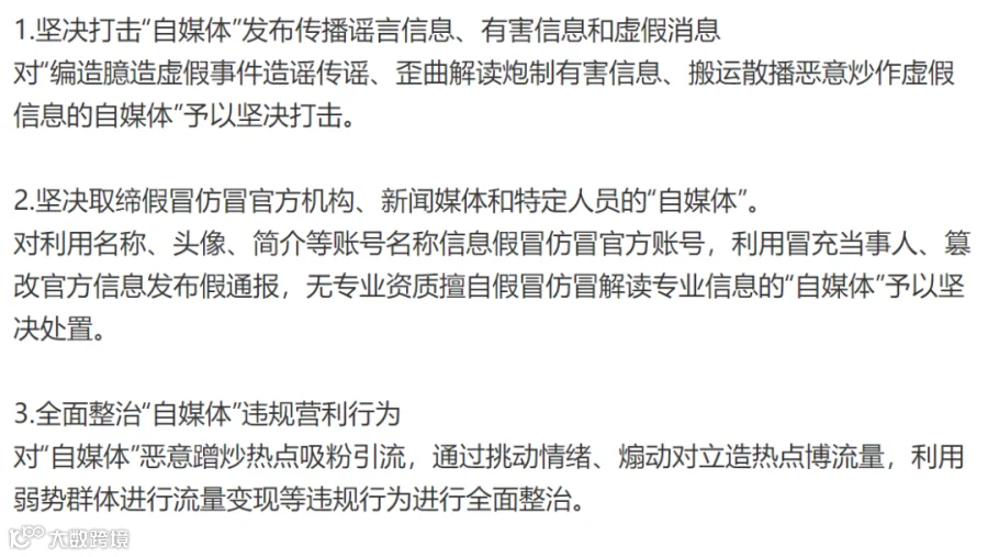 为营造安全、文明、和谐的网络生态环境,维护良好的网上信息内容传播秩序,微博积极响应中央网信办“清朗·从严整治‘自媒体’乱象”专项行动的要求,切实履行平台主体责任,即日起开展为期2个月的专项治理行动,主要工作内容如下: