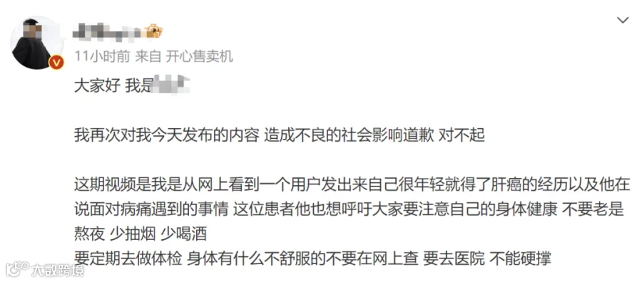 3月31日晚,北京市网信办发布通告称,已就“自媒体”账号@金洋Jyan编造“肝癌晚期”虚假事实、以卖惨方式博取流量的违规行为,约谈了相关平台。