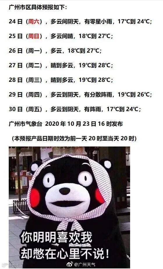 受持续补充的弱冷空气影响,23日-26日,广东省大部分市县维持多云干燥天气,昼夜温差较大,早晚天气清凉,其中,24日-25日受“沙德尔”的外围环流和弱冷空气共同作用,粤西转小雨到中雨,雷州半岛部分市县有大雨局部暴雨。