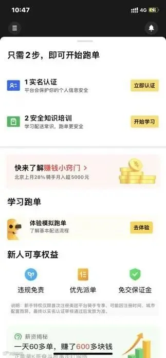 美团骑手(众包)软件,仍然可以注册,结束考核后可正常上线接单。