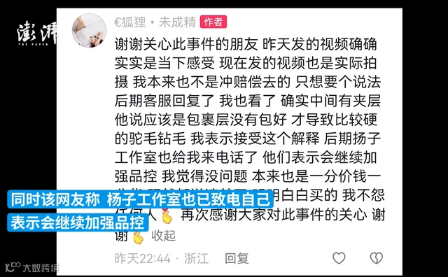 剪开被子竟有这么多头发?厂商:是驼毛!带货明星本人回应