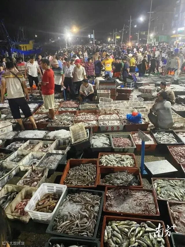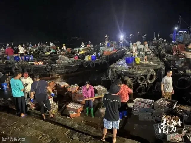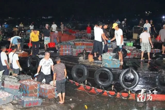 卸货、交易、运输,这些流程环环相扣,节奏极快,渔民、工人、商人、司机共同组成了一条由强健肌肉驱动的“海鲜买卖流水线”。经过他们的努力,当天就可以把最新鲜的惠来海产送到各个城市,让广大人民群众都能品尝到最地道的“惠来味道”。