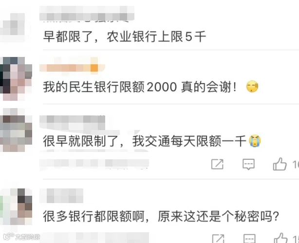 银行卡每天交易限额5000元?网友:用自己的钱也要被限?回应→
