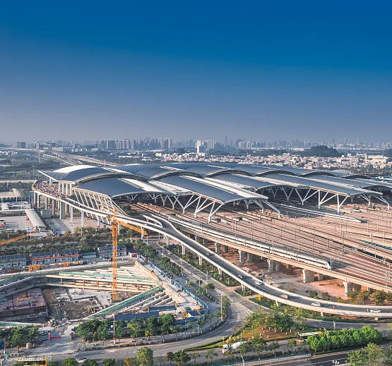 新白广城际与穗莞深城际接驳于新塘站,直接将广州白云机场和深圳宝安机场连通,实现广东省两大“4F”机场的城轨直通,形成湾区的空铁联运。