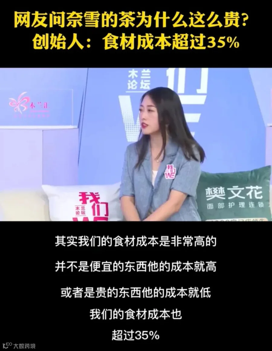 一杯“霸气芝士芒果”售价30元,创始人彭心曾说过奈雪“用最新鲜的当季水果”,价格高但食材成本超过35%。