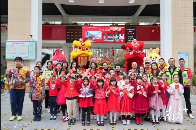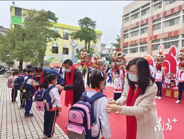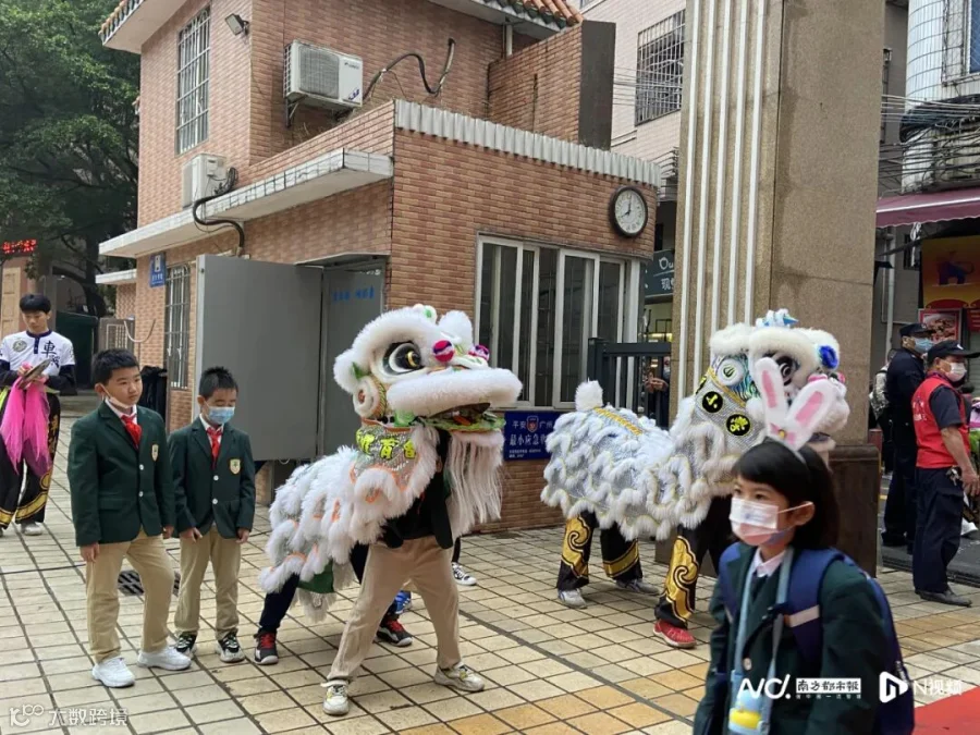 “今天终于可以回到学校看到老师和同学们了!”2月6日早上7点40分左右,还未走到车陂小学校门口,远远就能感受到新学期的热闹气氛,“咚咚锵咚咚锵……”车陂龙狮队、车陂小学龙狮队的队员们一大早已经到学校门口就位舞狮,锣鼓声声迎接同学们回校。