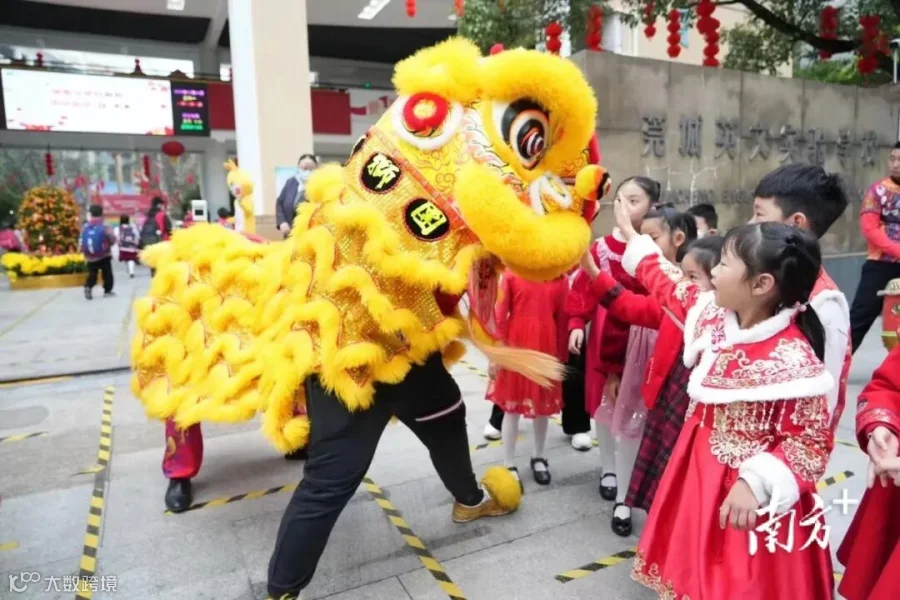 少年醒狮迎新年!开学第一天,松山湖晓月湖家禾幼儿园为孩子们送上新年祝福以及带有祝福寓意的水果等,并开启庙会活动迎接孩子们返校。今日幼儿园还将开放5组家庭名额参观、体验开学典礼、迎新庙会。