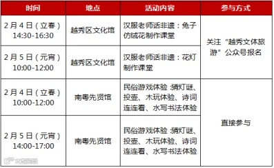 为迎接元宵佳节,越秀区举行好运成兔(TWO)国潮游园会。越秀区文化馆将举行“兔子仿制绒花制作课堂”“花灯制作课堂”活动。在南粤先贤馆还设有丰富多彩的民俗游戏,猜灯谜、投壶、木玩体验、诗词连连看、水写书法体验等。
