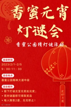 香蜜公园将开展花灯手工DIY活动和汉服游园活动。穿着汉服前往的市民朋友,可到游客服务中心领取兔年礼品。