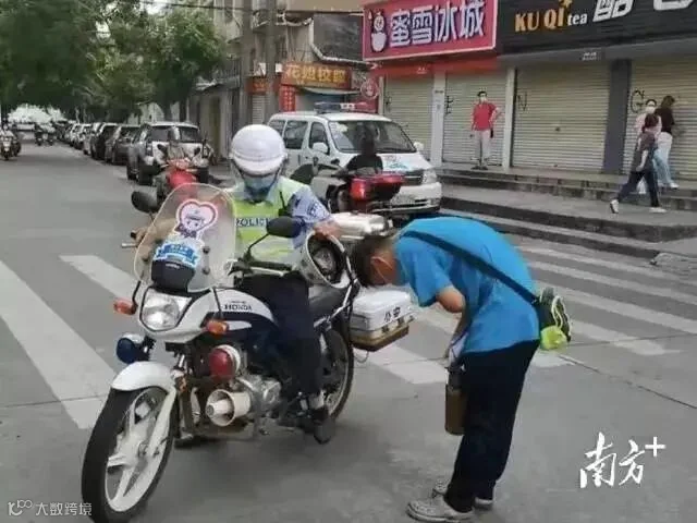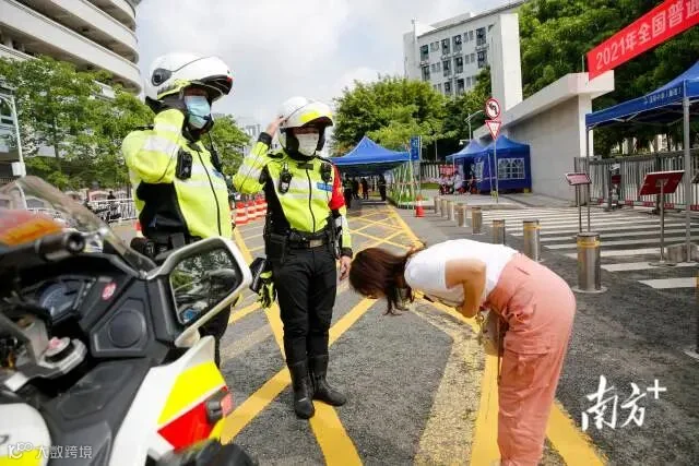 湛江一名考生向交警鞠躬。