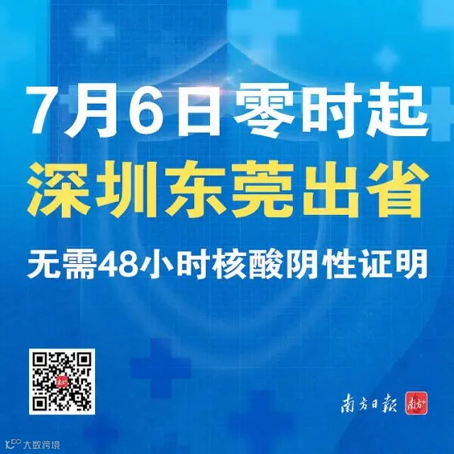 7月6日零时起,深圳东莞出省无需48小时核酸阴性证明