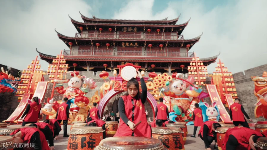 正月初一上午,汕头市潮阳区文光塔广场锣鼓喧天,众多青年敲槌迈步。他们矫健的身姿、豪迈的气势,吸引了不少过路游客。