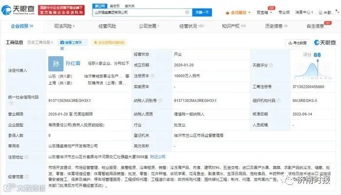天眼查App显示,山东强盛集团有限公司成立于2020年1月,注册资本1亿元人民币,经营范围包括市场开发建设、市场经营管理、物业