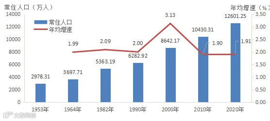 历次人口普查广东常住人口及年均增长率↑