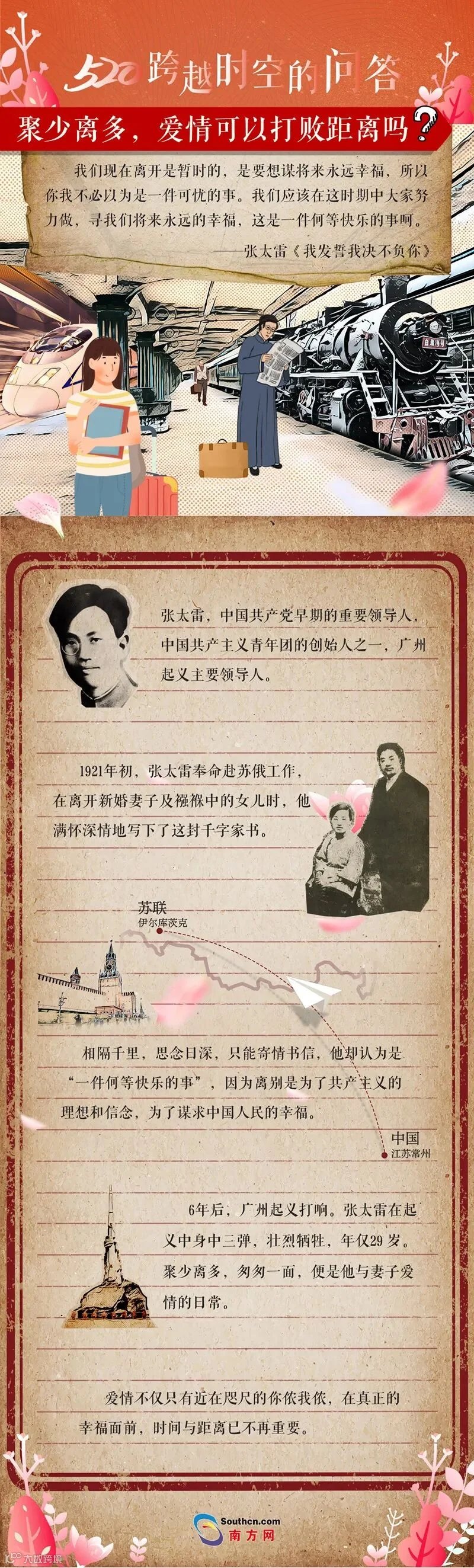 今天发布第一篇,从张太雷写给妻子陆静华的一封家书中,破解爱情与距离的难题。