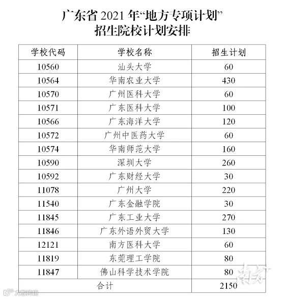 4月14日,广东省教育考试院公布《关于做好2021年重点高校招收农村和贫困地区学生工作的通知》,华南农业大学、广东外语外贸大学、南方医科大学等16所省内重点高校,招收2150名农村和贫困地区学生,进一步提高我省农村和贫困地区学生就读重点高校的比例,促进教育公平。