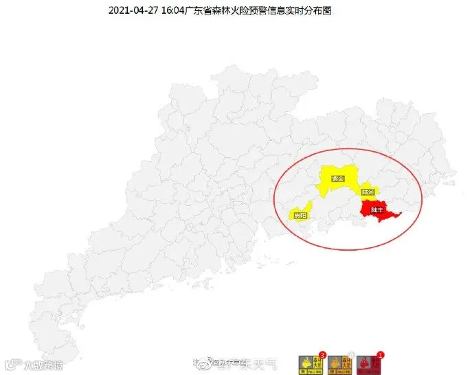 雷州和徐闻雷雨大风黄色预警信号生效中