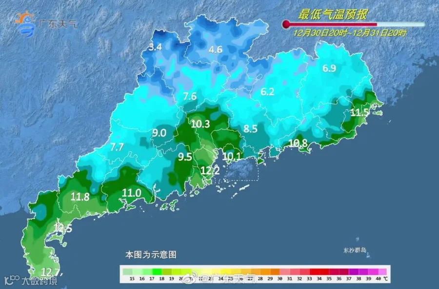 30日,广东大部市县多云到晴,白天气温小幅回升,最低气温:韶关和清远3℃~6℃,其中高海拔山区零下1℃~2℃,有霜(冰)冻,南部沿海市县10℃~13℃,其余市县6℃~10℃。