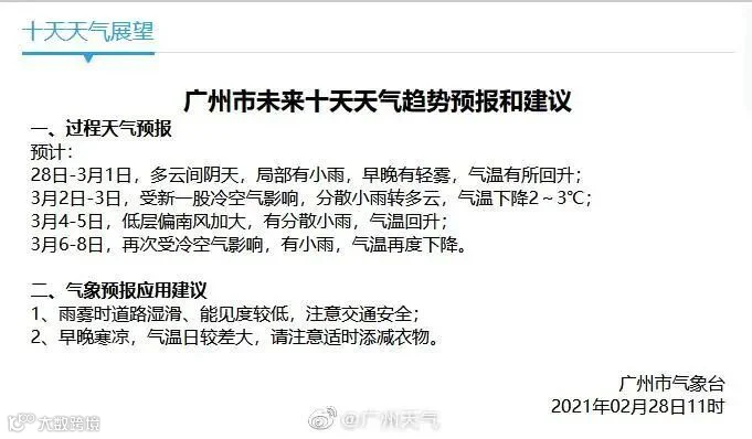 3月1日白天,大部阴天间多云,气温继续回升;西部的部分市县有分散小雨,早晚有轻雾,个别市县有雾,琼州海峡早晚有轻雾,部分时段有雾。