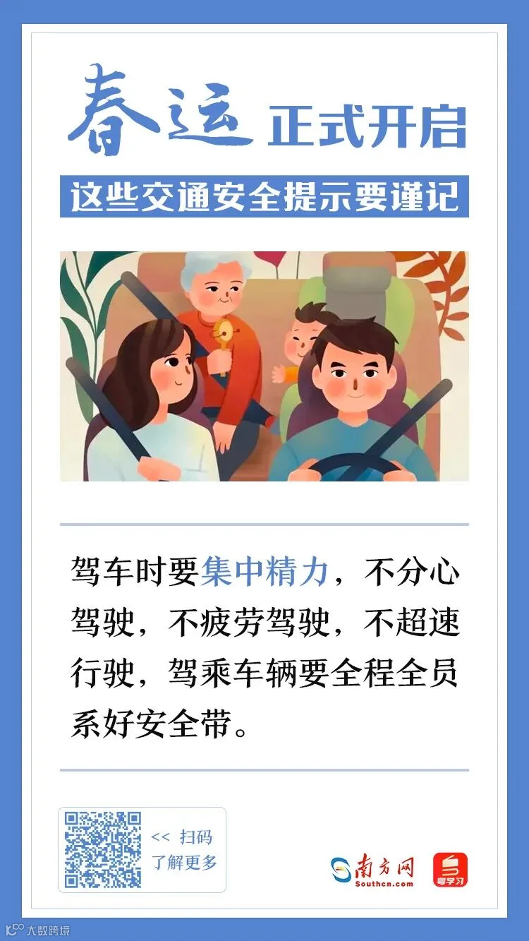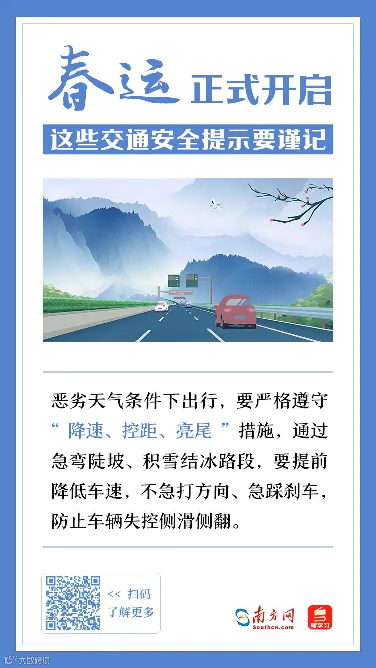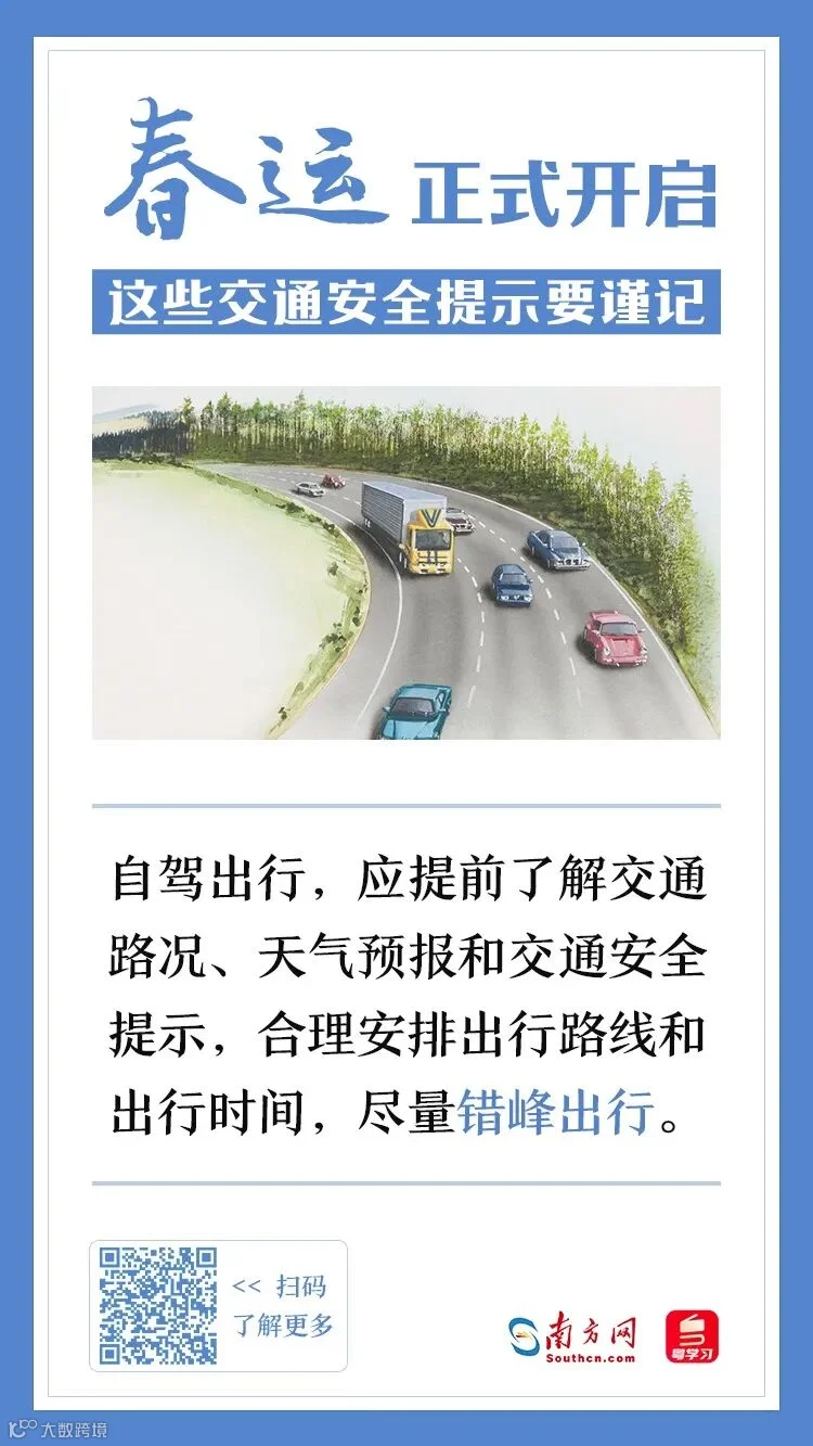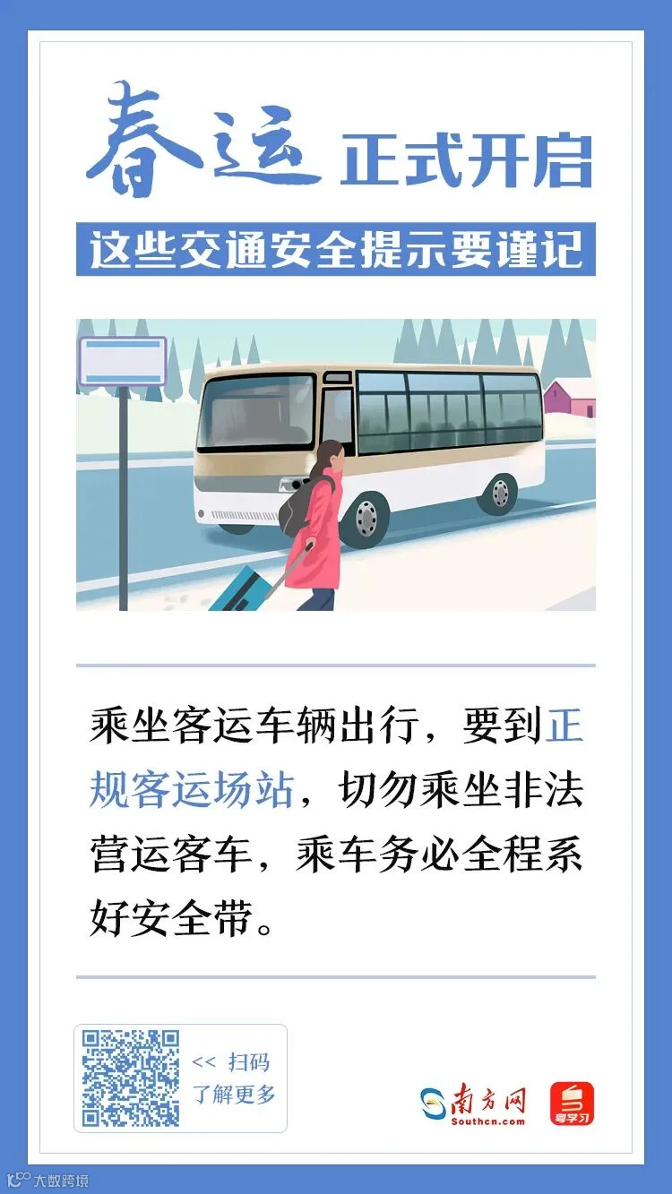 据介绍,2023年春运广东全省旅客发送量预计将达到1.06亿人次,同比2022年增长7.4%。其中道路运输预计约有7000万人次,同比增长3.98%。与此同时,今年春运将严格落实公众出行优化保障的政策,执行新冠病毒感染“乙类乙管”政策和疫情防控新十条措施,不再对乘客查验核酸检测阴性证明和健康码,不再开展落地检,不再实施乘客测温,不随意暂停客流服务。