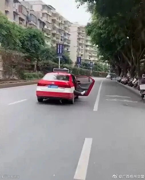 3月11日,一段网传视频显示:一辆红色出租车开着右后门在路上行驶,一只脚伸出车外。梧州市公安局交警支队介绍,经调查,11日中午,司机刘某驾驶出租车(车牌:桂DT**79、梧州某出租公司)在红会医院附近搭载一名女性乘客到钱鉴,途中乘客因为行车路线问题与司机产生纠纷,乘客将右后门打开并伸脚露出车外,司机发现后靠边停车并向110报警。