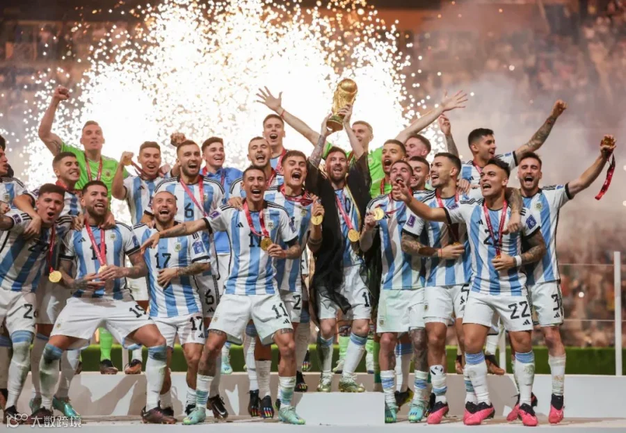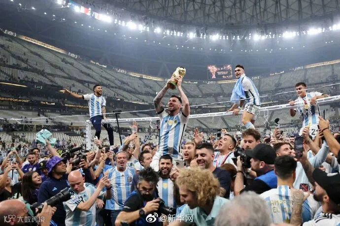 阿根廷队球员在颁奖仪式上庆祝。新华社记者 曹灿 摄
