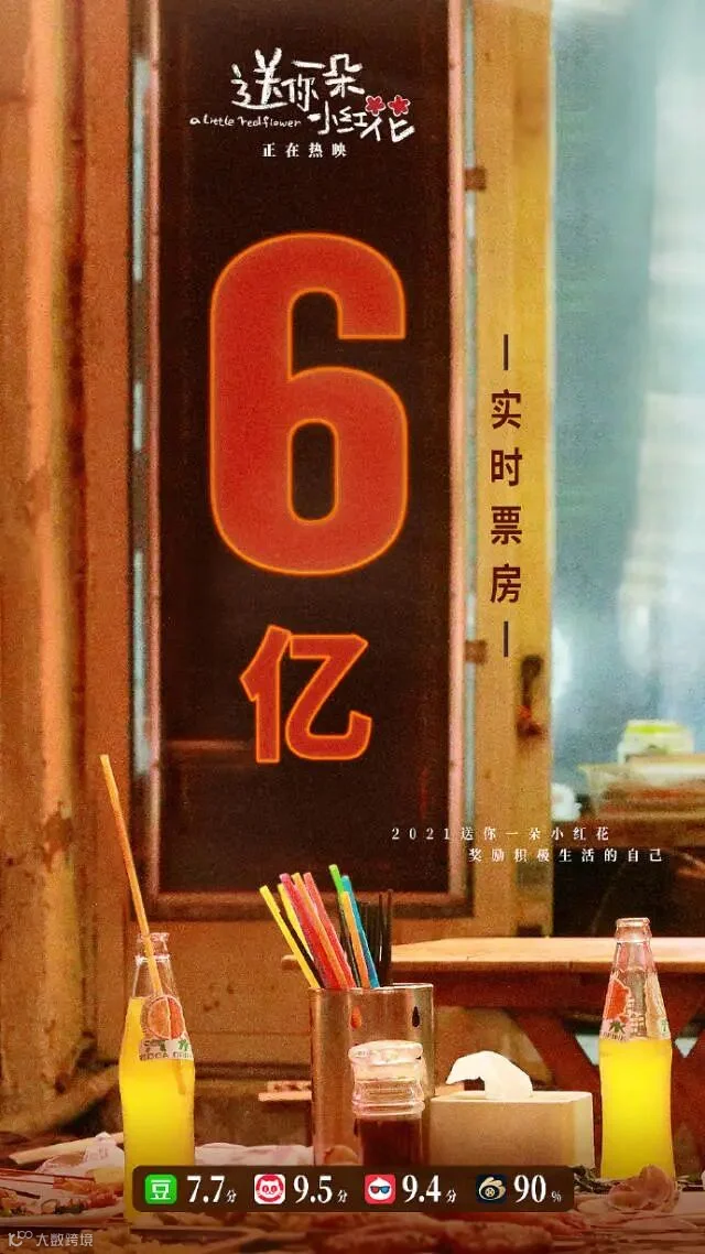 1月2日,电影官方微博挂出喜报:上映3天的《送你一朵小红花》票房突破6亿!