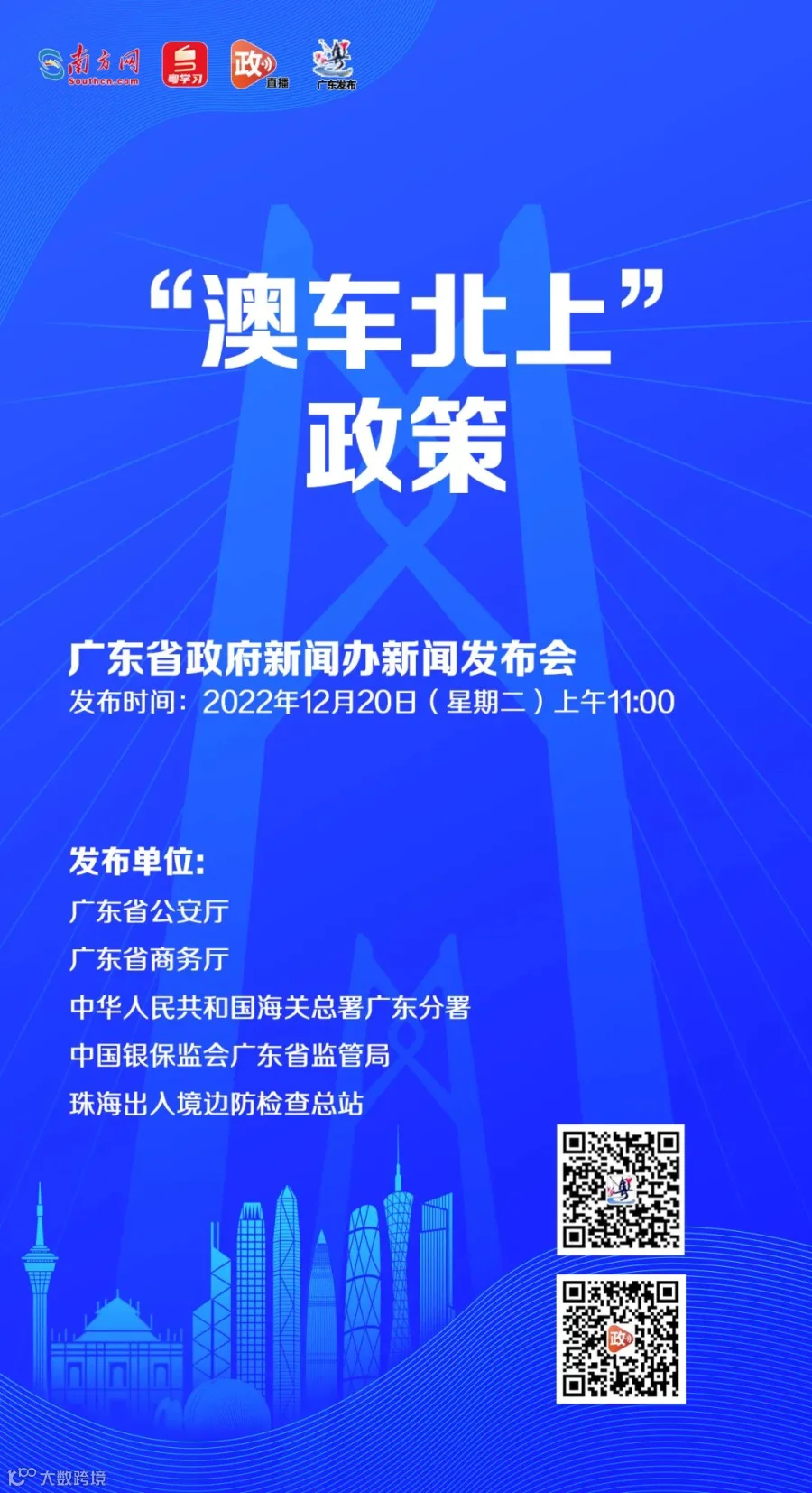 同日,据“珠海发布”,珠海市新型冠状病毒肺炎疫情防控指挥部发布通告,调整珠澳口岸出入境人员核酸检测阴性证明时限。根据当前疫情形势,经珠澳联防联控机制协商一致,自2022年12月20日零时至12月31日24时,所有经珠澳口岸入境、出境人员调整为须持72小时内核酸检测阴性证明通关。珠澳口岸其他疫情防控措施保持不变。
