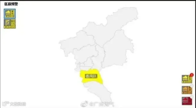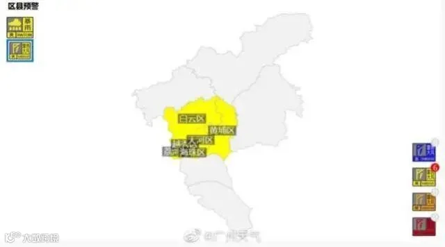 16时起,白云、番禺也都挂起雷雨大风黄色预警信号。
