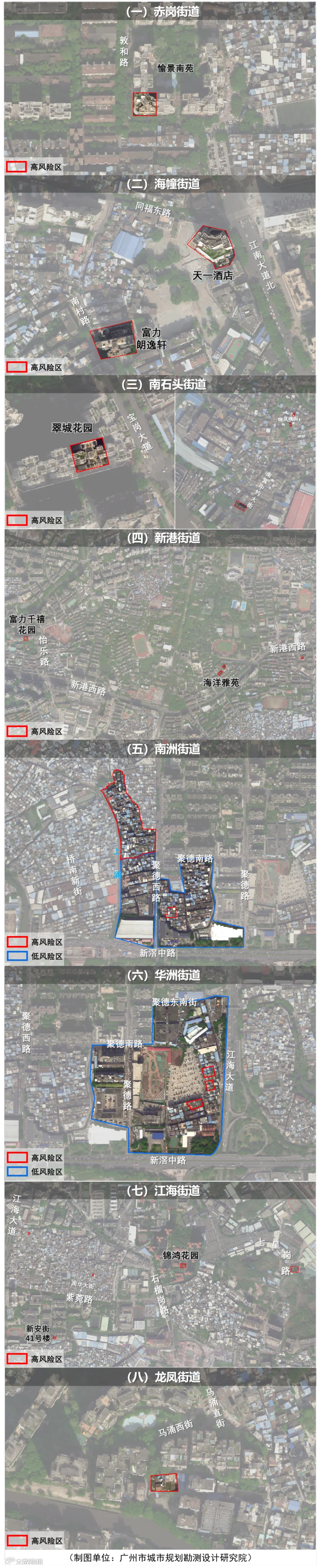 根据疫情处置进展,经专家组综合研判,从2022年11月15日起,将洛浦街西一村新涌南街9号、11号、11号-1、13号、15号、17号、19号、21号、23号房屋,新涌南街横巷1号、3号、5号房屋,东至西码头涌、南至九村大街东一巷、西至西华路、北至新涌南街的围合区域,广奥社区中海蓝湾小区(含高风险区A2栋)调整为低风险区,实行“个人防护、避免聚集”等防范措施。