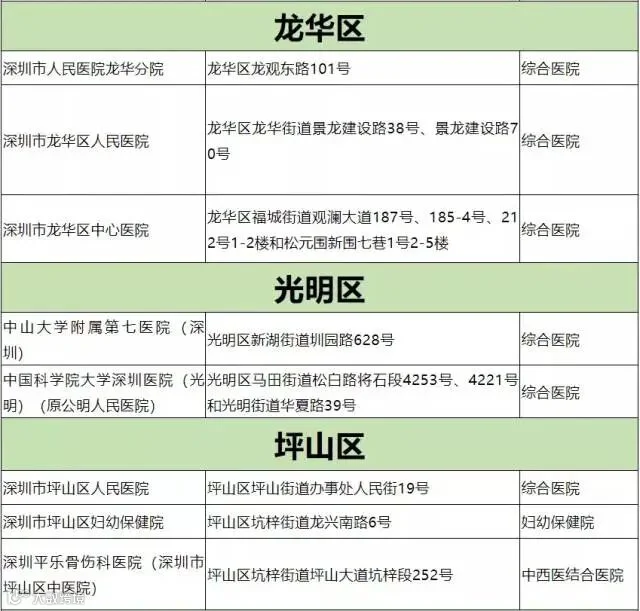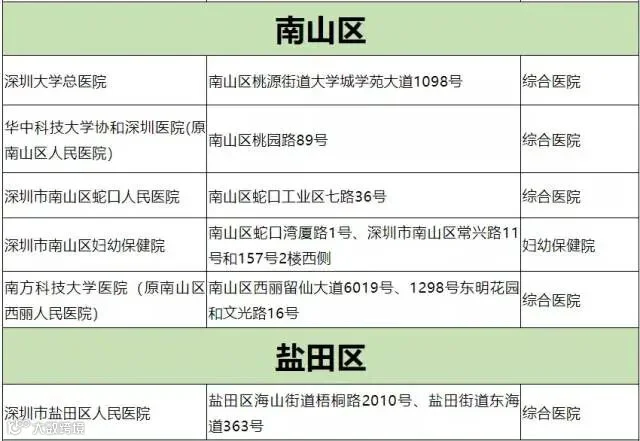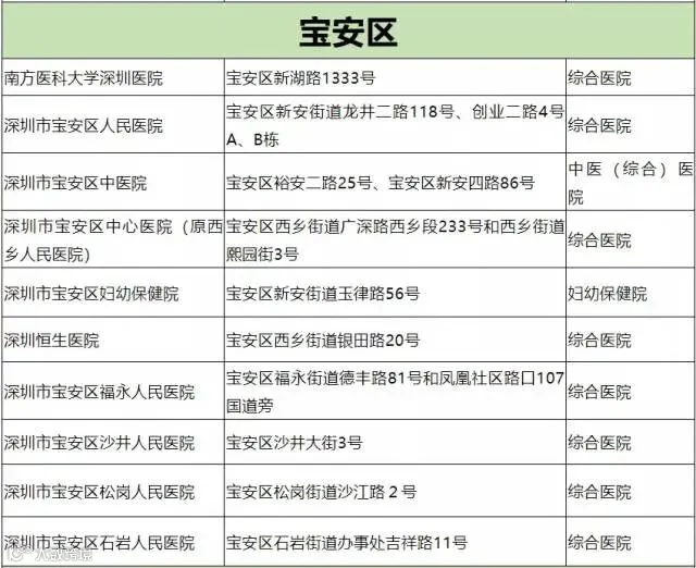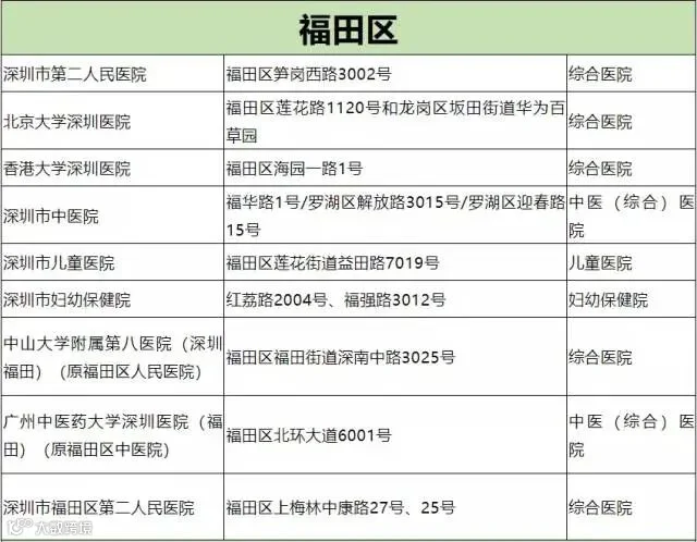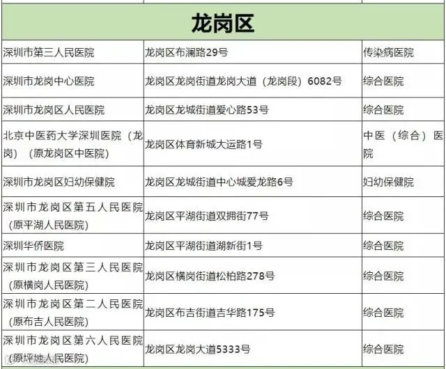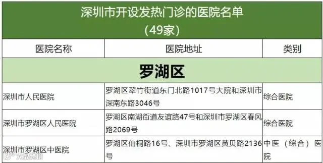 深圳市开设发热门诊医院名单