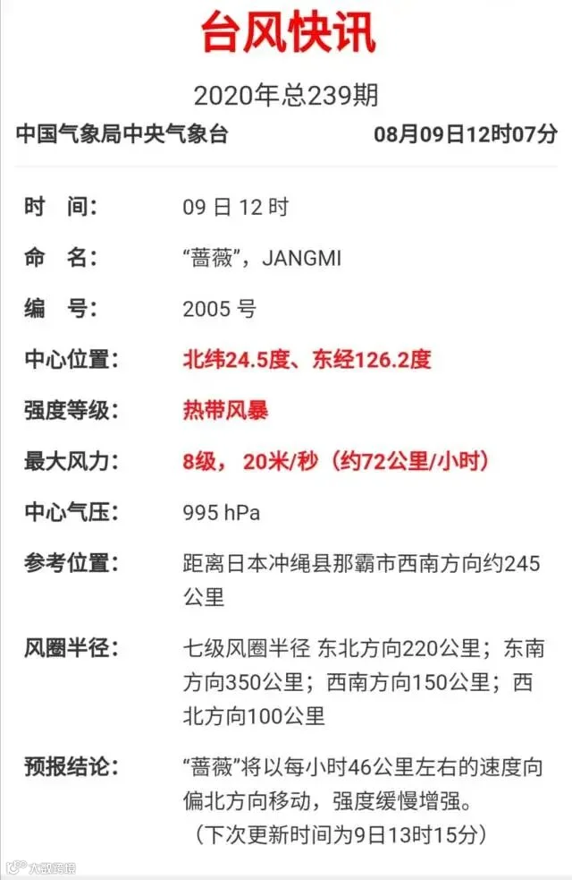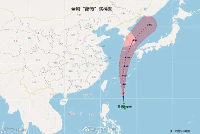9日2时左右,原位于菲律宾以东洋面的热带低压已加强为今年第5号台风“蔷薇”(热带风暴级)。截至9日12时,“蔷薇”位于距离日本冲绳县那霸市西南方向约245公里处,预计其将以每小时46公里左右的速度向偏北方向移动,强度缓慢增强。